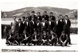 1961 - Colegio Carmelitano (1959-1973) Día de San José e inauguración de los Juegos Inter clases fotografía tomada por el Sr. Tolosa y conservada durante 54 años adquirida en mayo de 2015 en Foto Estudio Tolosa si ampliamos la fotografia en el Balon de Basketball podemos leer 1 - B